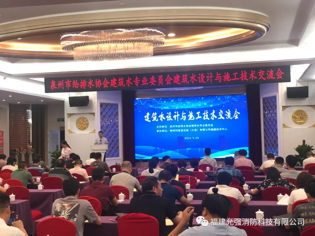 2021年5月28日,福建允强消防科技有限公司作为唯特利管道设备(大连)有限公司福建技术中心与泉州给排水协会联合召开的建筑水设计与施工给水交流会取得圆满成功。