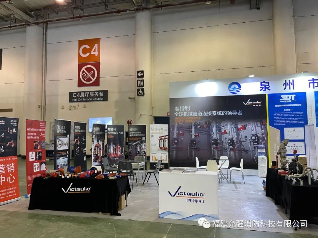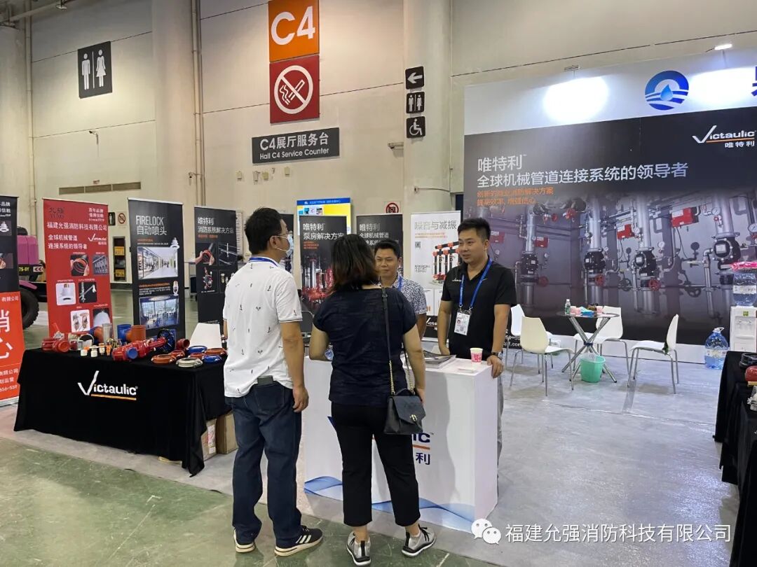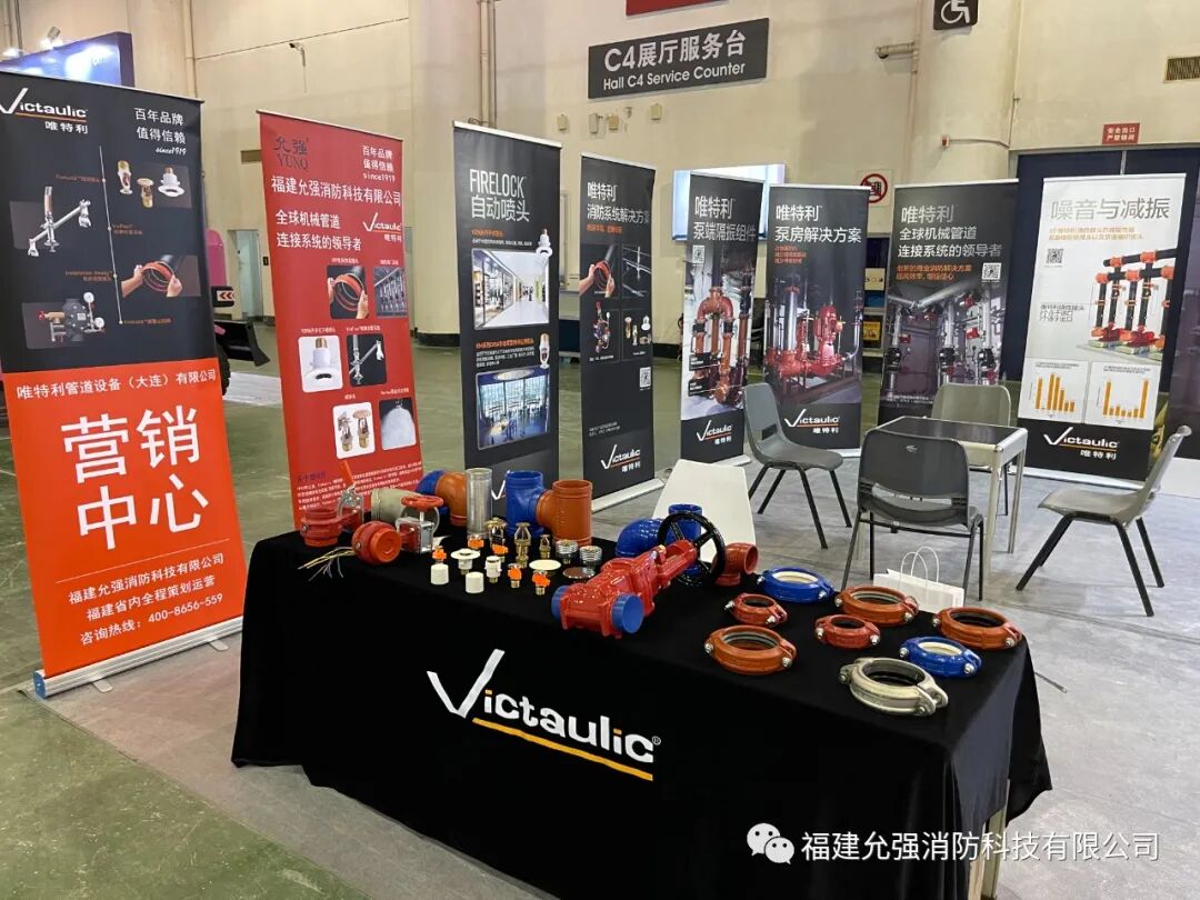福建允强消防科技有限公司携大连唯特利沟槽式管件、喷淋头、消防阀门、不锈钢金属洒水软管等产品参加了此次展会,并获得广泛关注。